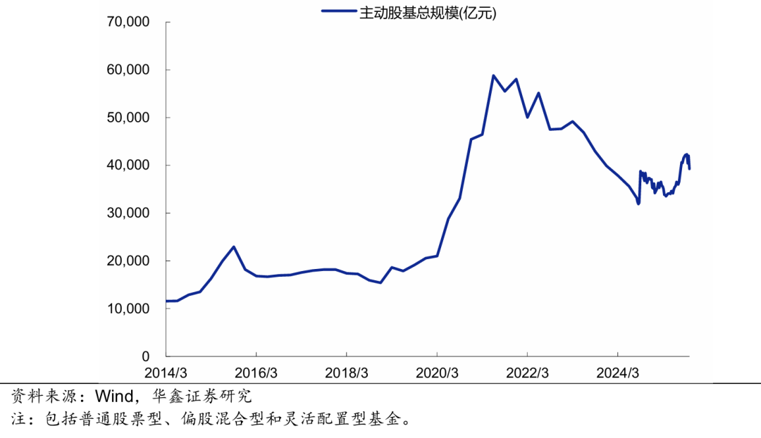 根据最新净值及份额估算,截至11月7日,主动公募股基资产净值在3.9万亿元,较2024Q4的3.66万亿元小幅上升。