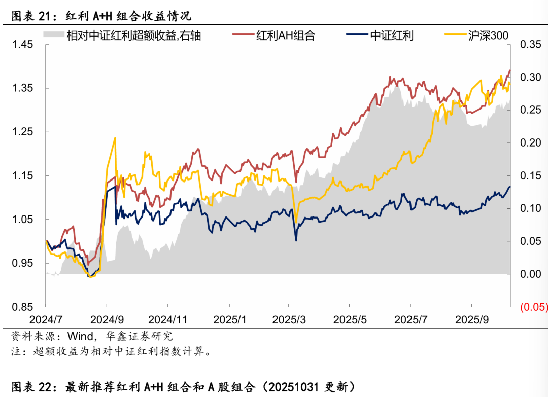 在缩表周期下,股债性价比偏向权益的幅度有限,风格上价值相对占优的概率更高。我们认为,红利类股票大体上应具备以下三个特征:不扩表,盈利好,活下来。综合以上三个特征,并结合公募三季报欠配情况,我们推荐的A+H红利组合包括A+H20只个股,A股组合包括A股20只个股,主要集中在银行、电信、石油石化、交通运输等行业,由于部分行业个股数量较多,银行等行业个股进行适当精简。(详见专题报告《“债性” 红利股择券策略》)