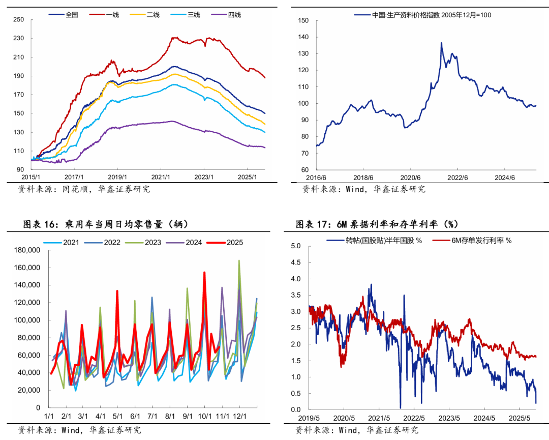 资产端,9月物量数据较8月继续走弱,重点关注后续经济何时再现企稳甚至边际上行。两会给出2025年全年实际经济增速目标在5%左右,按照赤字和赤字率(4%)倒推,全年名义经济增速目标在4.9%。需要进一步观察确认的是,5%左右的名义经济增速是否会成为未来1-2年中国名义经济增长的中枢目标。