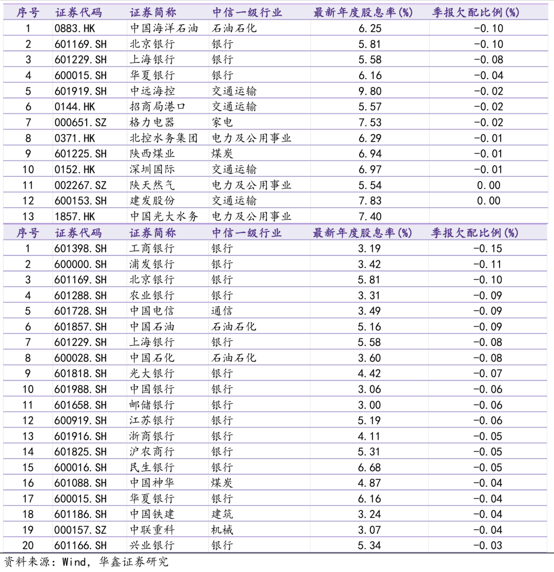 在缩表周期下,股债性价比偏向权益的幅度有限,风格上价值相对占优的概率更高。我们认为,红利类股票大体上应具备以下三个特征:不扩表,盈利好,活下来。综合以上三个特征,并结合公募四季报欠配情况,我们推荐的A+H红利组合包括A+H20只A股组合包括A股20只个股,主要集中在银行、电信、石油石化、交通运输等行业。